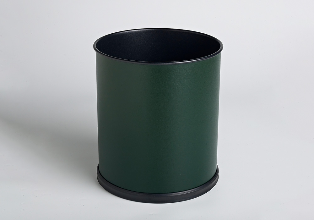 A little larger than the standard bed room bin. It is finished with a bezel on the top and is ideal in a busy meeting room.